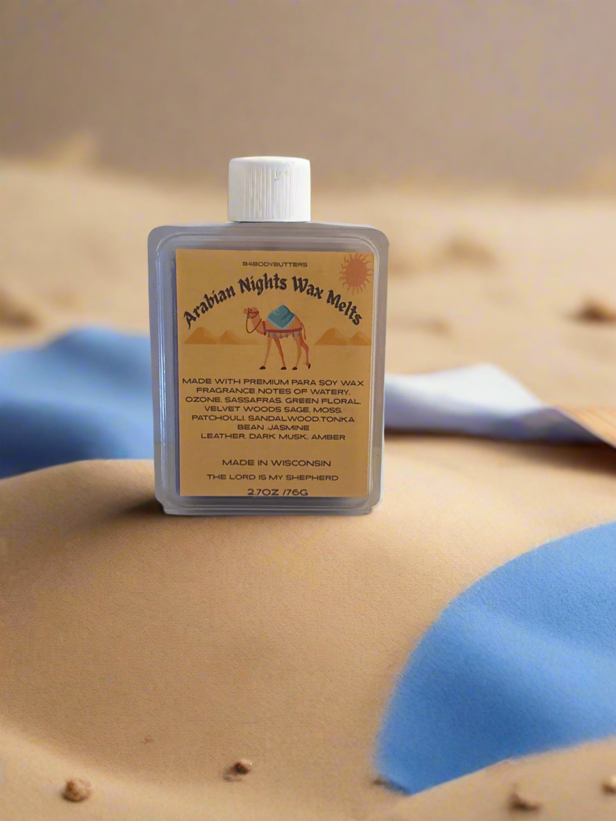 Indulge in the captivating aromas of our 2.7 oz Arabian Nights fragrant wax melts. The blend of Patchouli, Leather, Dark musk, and Amber will transport you to exotic lands. Immerse yourself in the luxurious scents and create an enchanting atmosphere in your home.